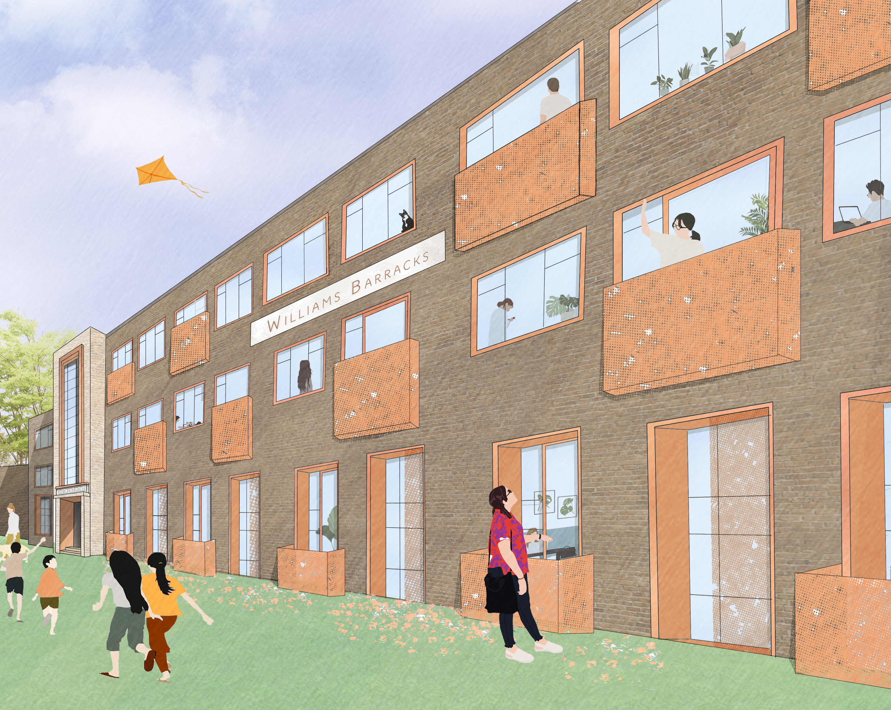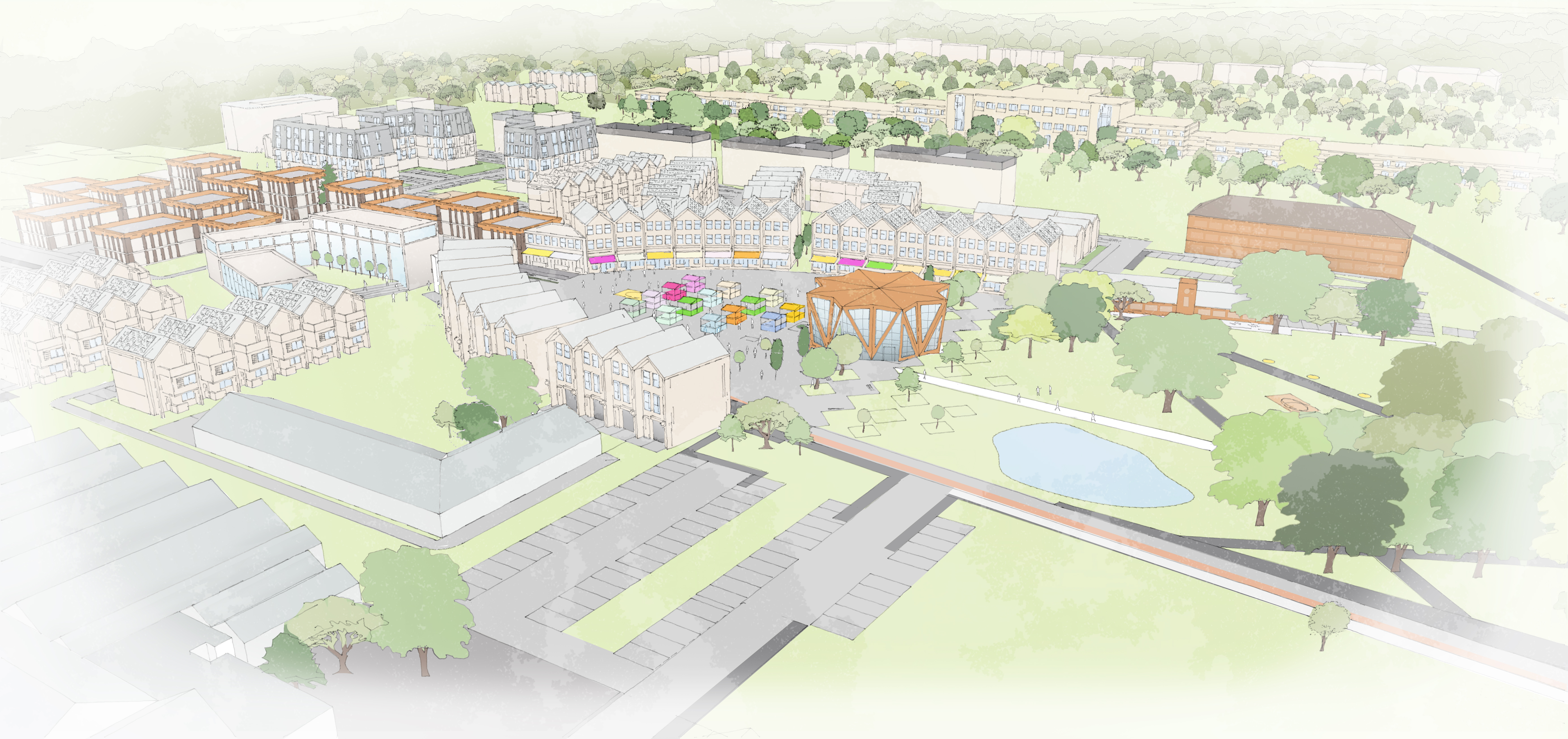 Knitting together suburban neighborhoods with a 3,700 home masterplan based in a closing MoD barracks. Proposals create 6 distinct character areas, protect heritage assets and deliver a new central plaza.