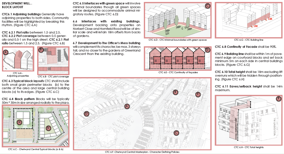 Large format area mapping to show key strategic decisions. Indicative ‘zoomed in’ area master plans to communicate look & feel. Detailed design codes to hold developers to account. Feasibility studies to make sure key community facilities were provided for. and proposals to protect and enhance local heritage buildings.