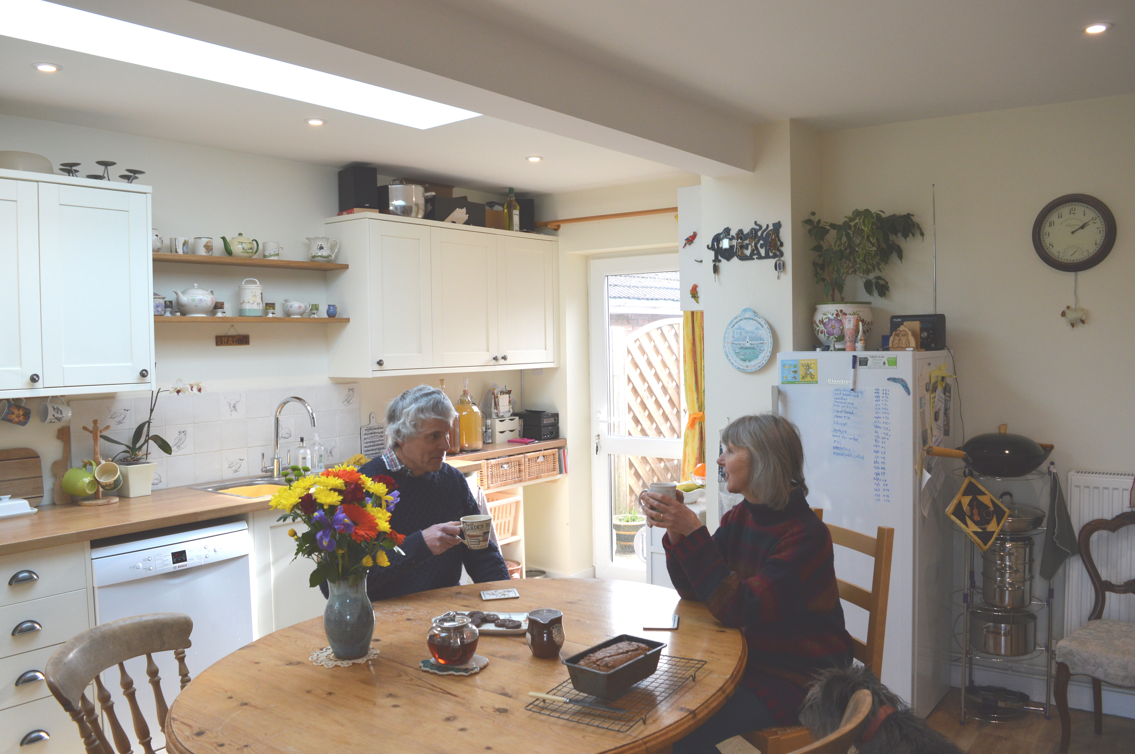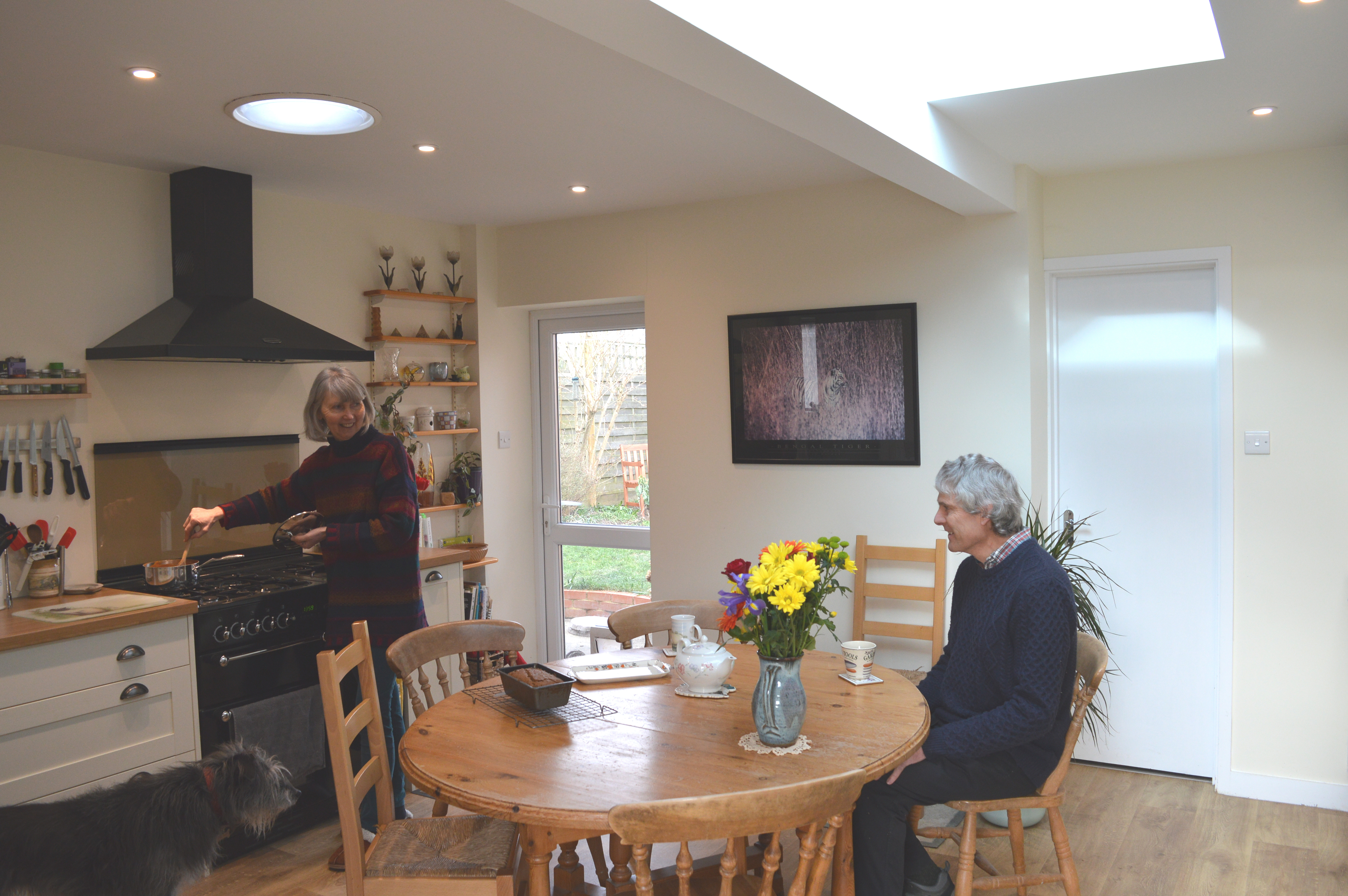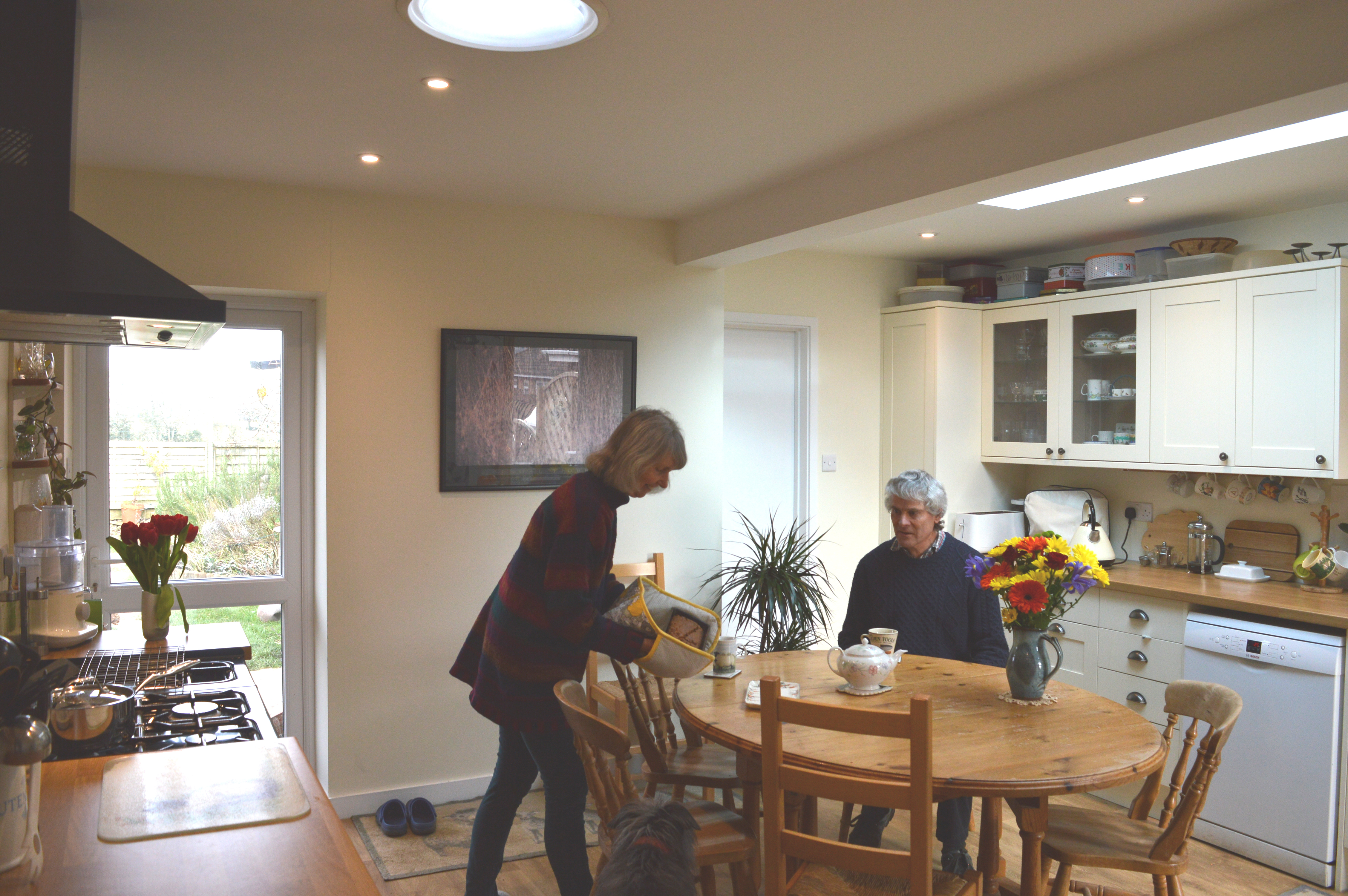 “The extension has transformed our cramped, functional kitchen into a beautiful, welcoming family space. It’s got lots of natural light from the roof lantern and sun pipe. The quality of light varies throughout the day and makes it a really lovely room just to spend time in and enjoy.”
